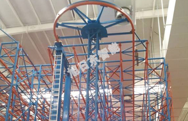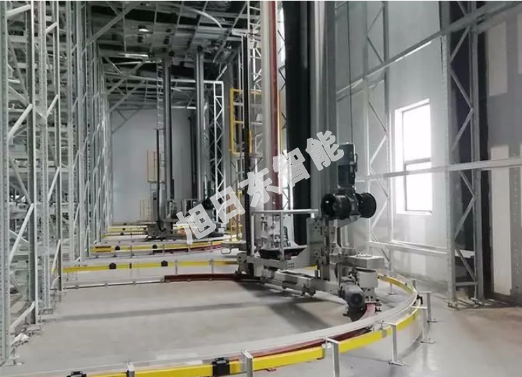 此類立體倉庫的堆垛機具有轉彎功能,能在多個巷道內行走及取放貨物,此種配置大大減少了堆垛機的用量同時也就降低了倉庫的建設成本。